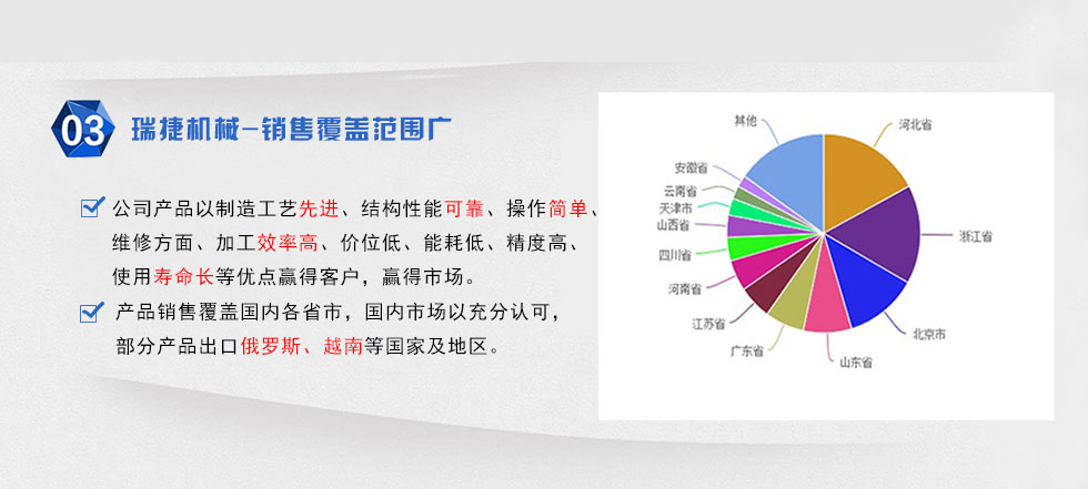 河北省邢台市瑞捷机械设备公司,创建于2003年,坐落在全国的机械制之乡-邢家湾工业区。本厂专业制造套丝机,TS80型套丝机,TS64型套丝机,TS50型套丝机,螺栓套丝机,S8139型套丝机,S8148型套丝机圆钢/圆管套丝机及切线板牙头等配套产品。